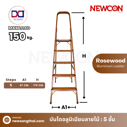 NEWCON บันไดอลูมิเนียมลายไม้ ที่มาพร้อมแป๊ปเหยียบขั้นบนสุด มีขนาดกว้างพิเศษ 250 mm.